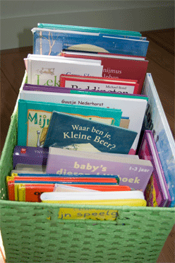 Ik ben enorm verwend met allemaal cadeautjes. Een bed vol met knuffels en een mand vol met boeken. Alle kleertjes hangen in de kast maar ik moet nog groeien om ze allemaal aan te kunnen.